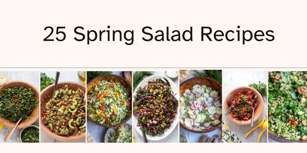 Spring is a fickle beast. Some days are as cold as winter and others are glimpses of the future summer. Spring salads really run the gamut between warm salads and no cook recipes. Choose accordingly, and no matter the weather these salad recipes are delicious
